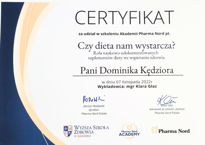 certyfikat dietetyk xxi wieku kędziora dominika