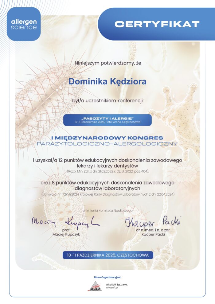certyfikat szkolenie pasożyty